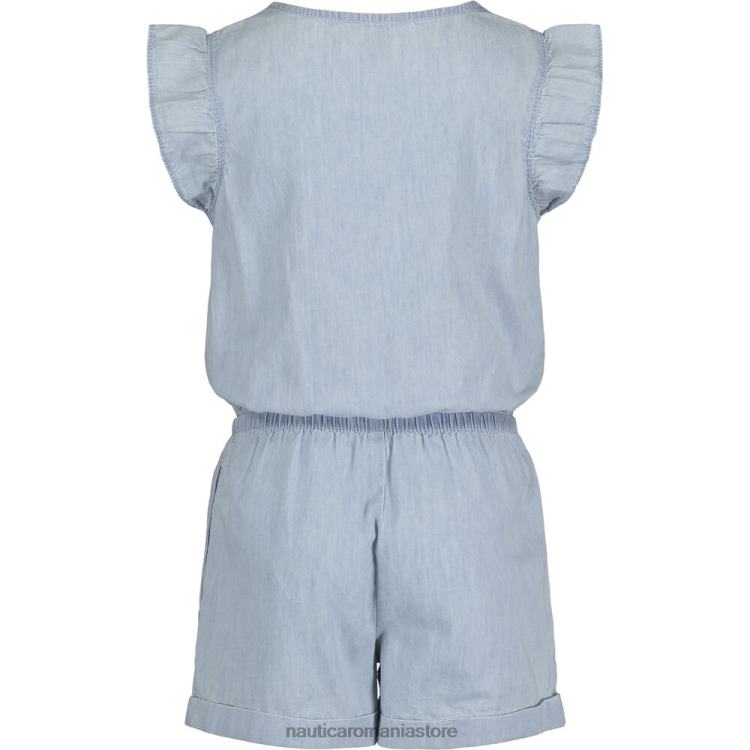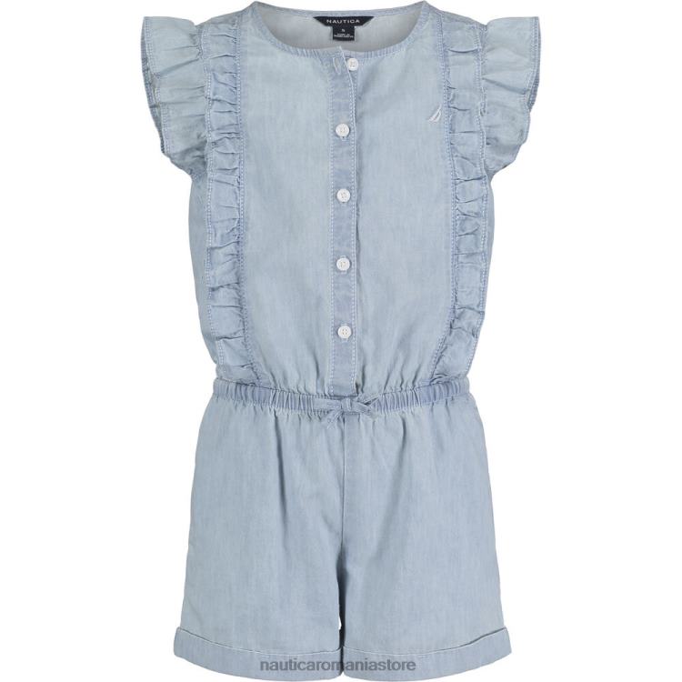 O bordură cu volane adaugă o flutură drăguță acestui salopet ușor din denim, iar talia elastică ține copilul confortabil într-un stil minunat pentru joacă.