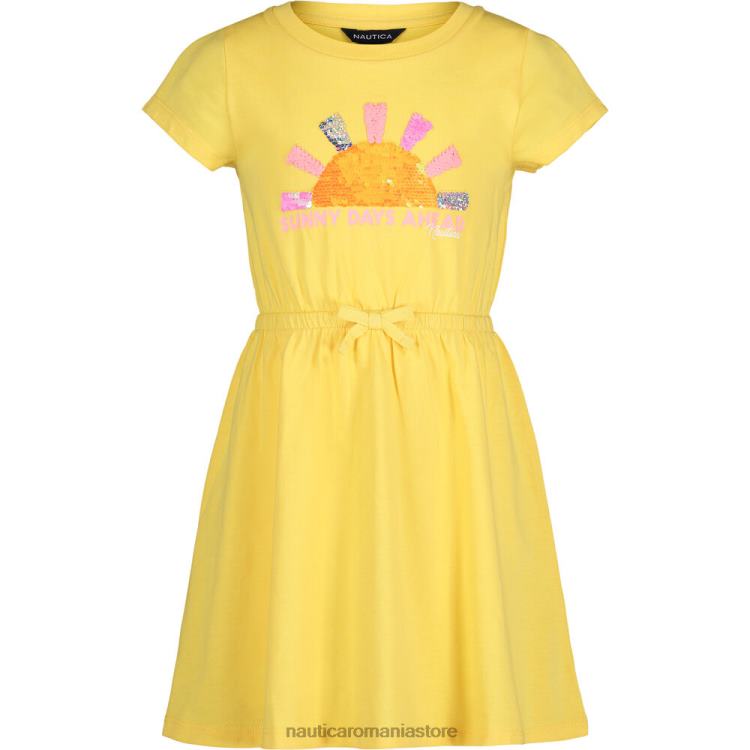 pentru confort și drăgălaș, această rochie tricou moale din jerseu de bumbac este excelentă pentru un stil ușor, având bretele încrucișate, grafică cu paiete răsturnabile și o talie elastică pentru o potrivire perfectă.