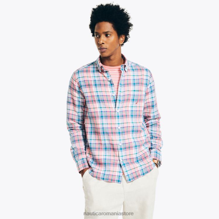 Confecționată din in-bumbac realizat în mod sustenabil, această cămașă în carouri este concepută cu un guler cu nasturi care rămâne în poziție, un buzunar aplicat în față și emblematica noastră emblemă j-class la piept.