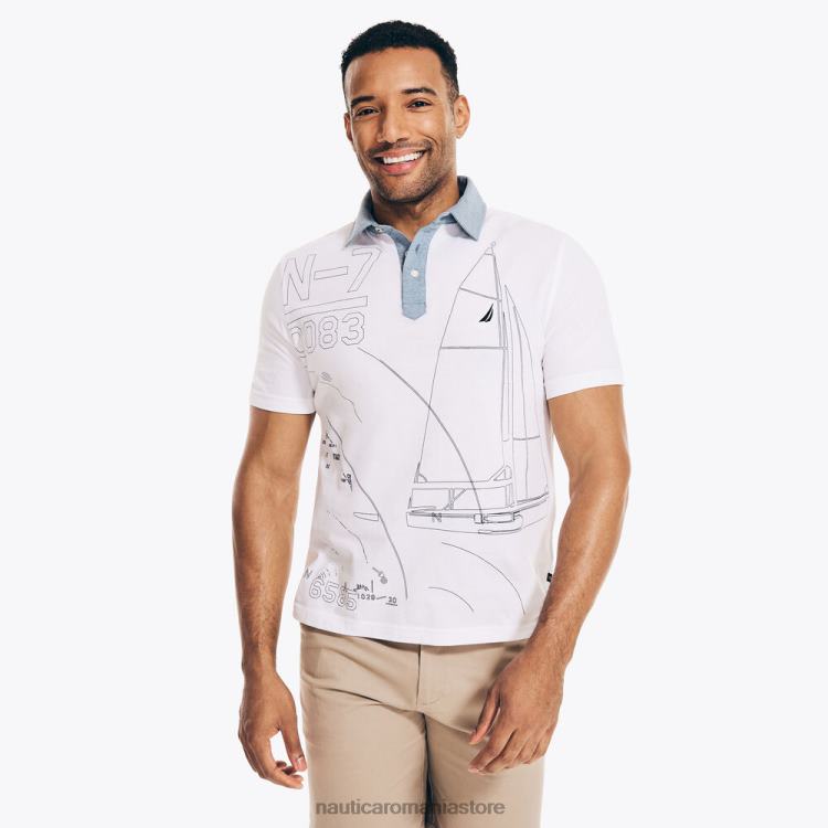 Nautica Romania | Nautica polo mare și înalt cu potrivire clasică cu imprimeu ancoră ZZ2JN580 alb strălucitor bărbați